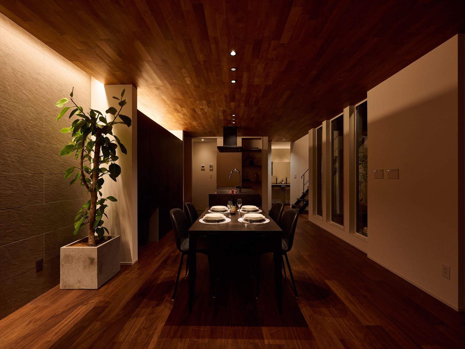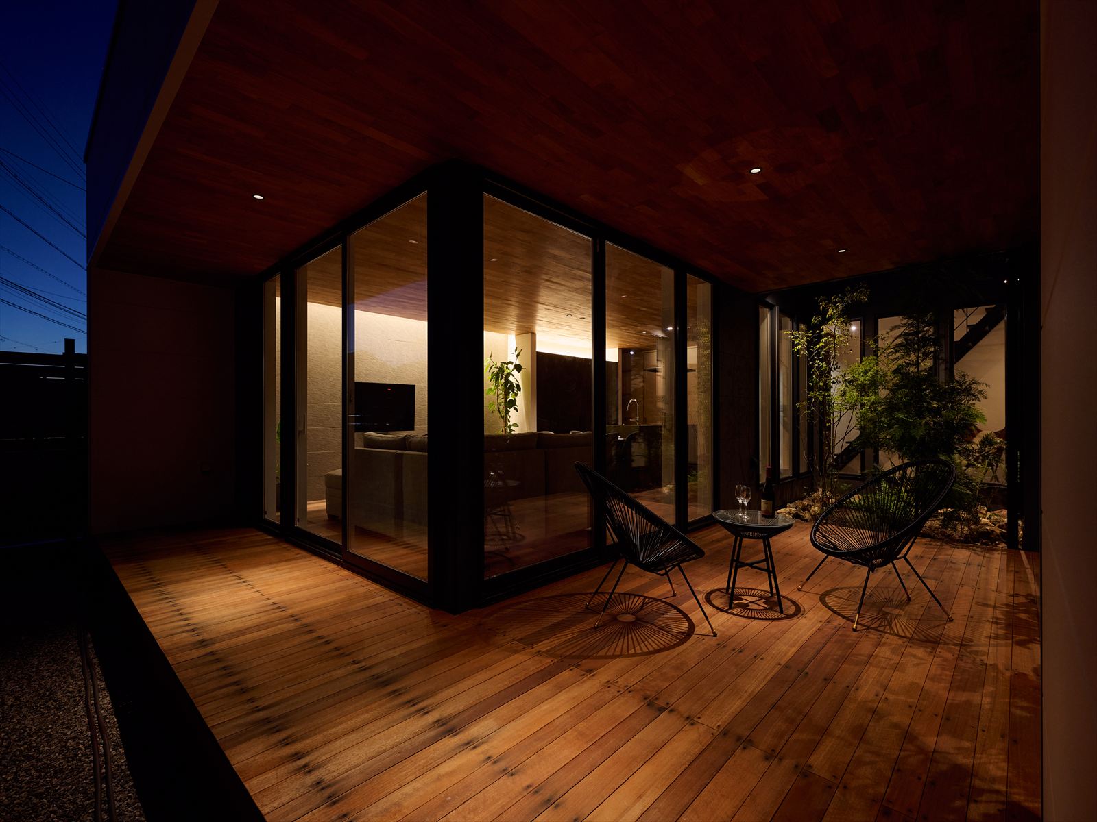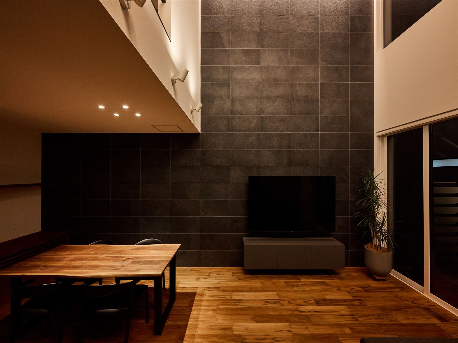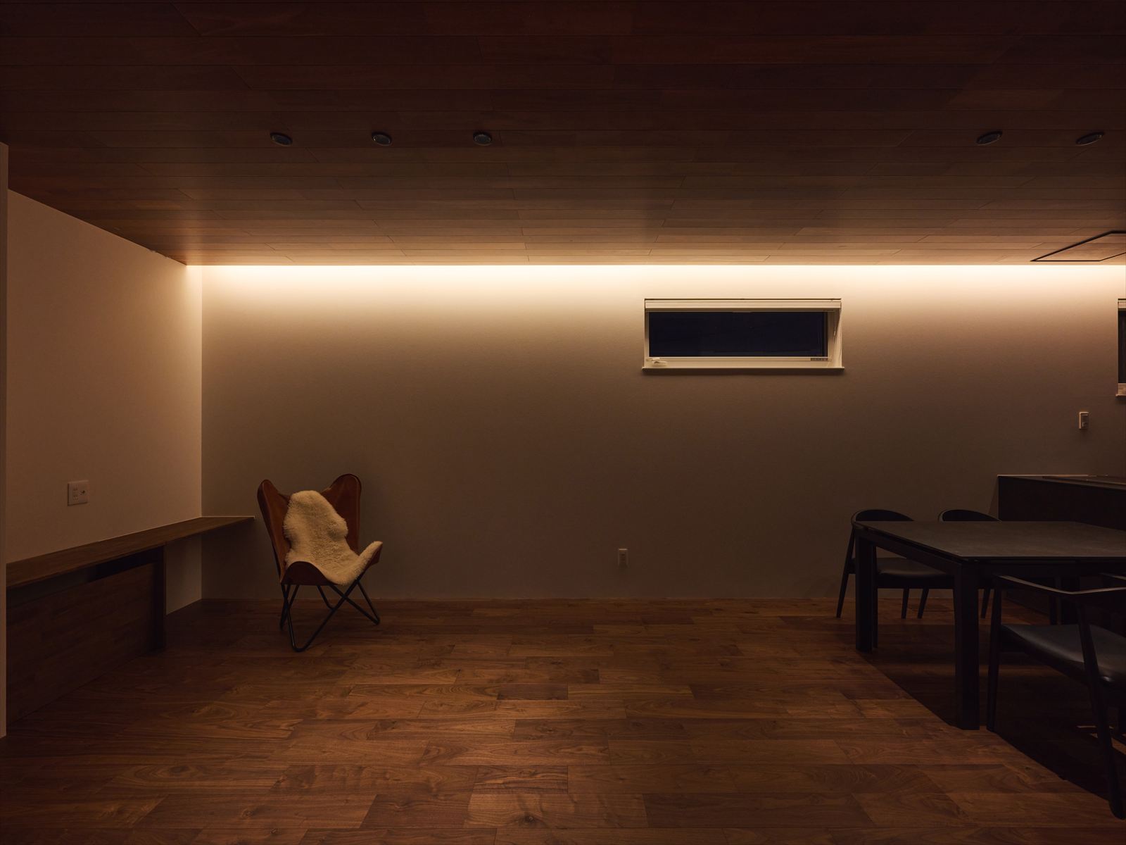 - カーテンに頼らない設計の中で生まれる、夜の落ち着いた表情