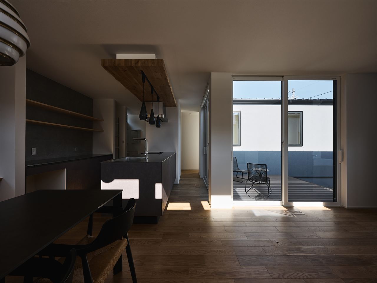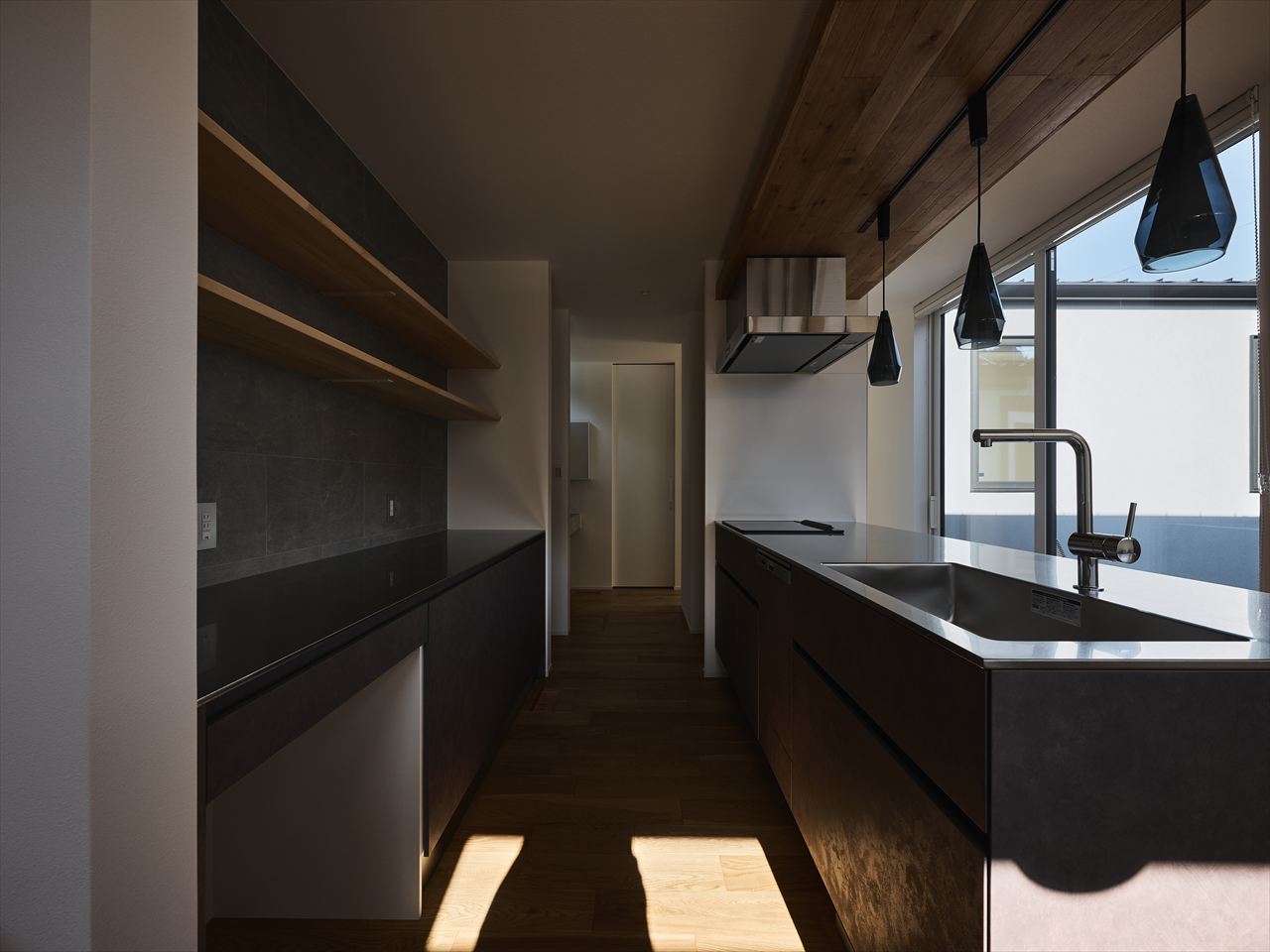 壁に閉じず、空間とつながるキッチン。