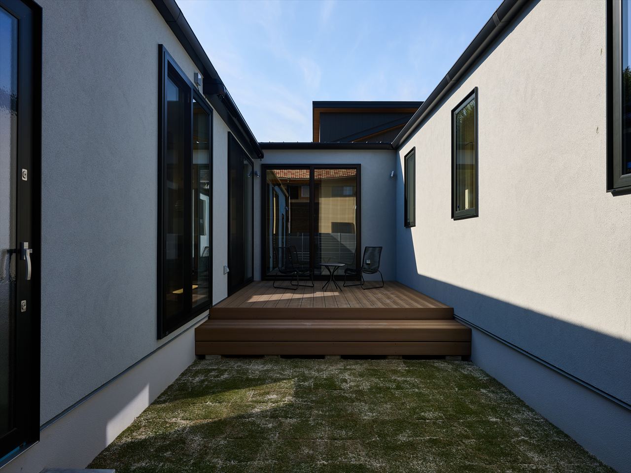 ウッドデッキと芝、植栽が、